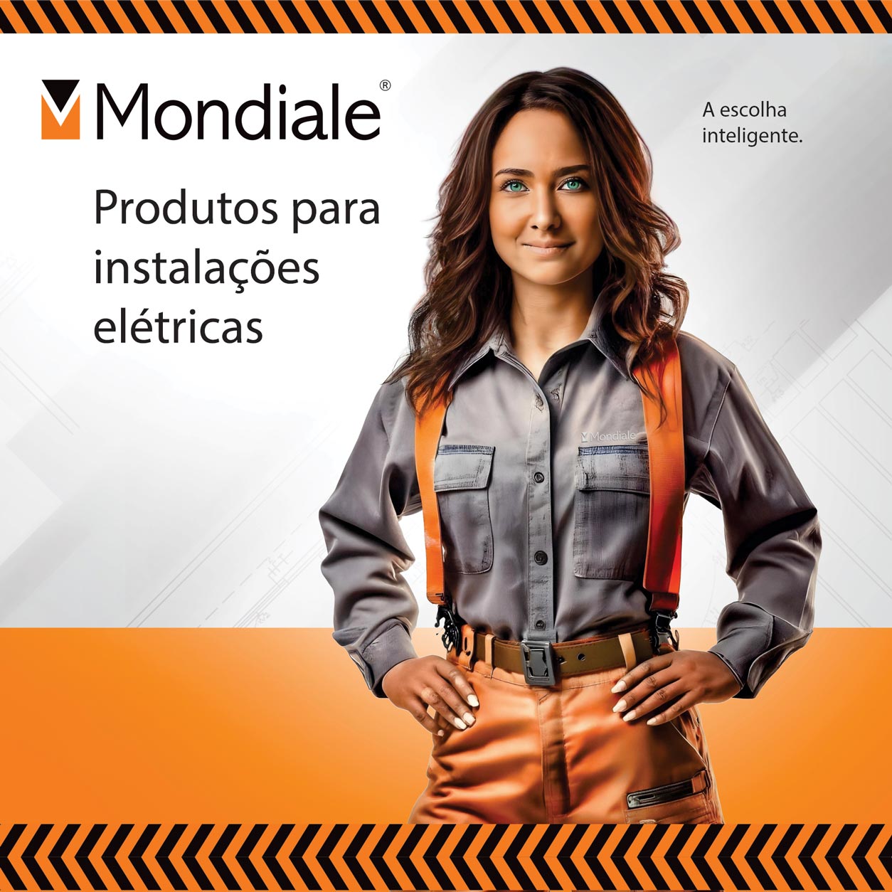 O logotipo da Mondiale bordado logo acima no bolso da modelo, por exemplo foi feito na unha, digo, com PhotoShop. O slogan: ‘A escolha inteligência’, bem genérica por sinal, mas faz algum sentido para os vendedores da BARTOFIL. Criação minha. Sem I.A. também.