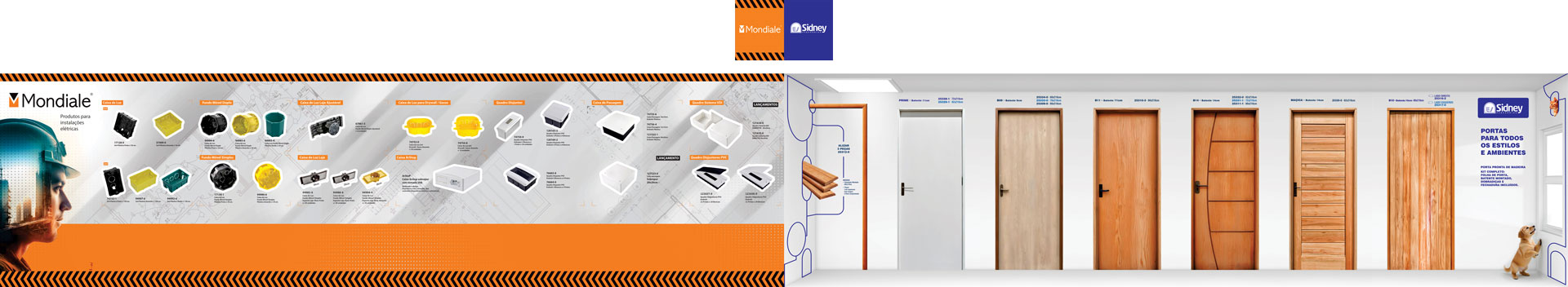 As duas criações contaram com intenso uso de Inteligência Artificial para gerar a imagens em alta resolução já que as mesas estavam com pouca qualidade. A arte criada para o stand da SIDNEY ESQUADRIAS merece outra postagem com a história da criação. O alisar, as portas o Golden Retriever, o gato, todas imagens deram bastante trabalho e até a frase foi criada com ajuda da I.A. e o resultado foi bem legal.